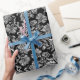Black & Shiny Silver Floral Damasks Wrapping Paper