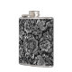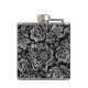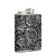 Black & Shiny Silver Flowers Damasks Pattern Hip Flask