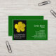 A business or profile card template with a band on the left, with a single flower motif, decorated with vertical text captions labelling the address area and contact details. The reverse of the card has the same colour theme as the front but has been left blank which can be left as is, or further customised. Suitable for a variety of businesses.