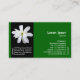 A business or profile card template with a band on the left, with a single flower motif, decorated with vertical text captions labelling the address area and contact details. The reverse of the card has the same colour theme as the front but has been left blank which can be left as is, or further customised. Suitable for a variety of businesses.
