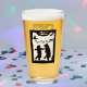 This glass tumbler for beverages has a black silhouette image on white of two black bears dancing together under trees and clouds with an owl on a branch watching them. Customise your text on the front and back with the templates.