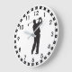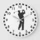 Nothing flashy here, just a black silhouette golfer image taking a full swing on a white background. Black numbers around the perimeter, with a marked with minutes make the clock easy to read. Perfect for home or office to show everyone what you'd really rather be doing!