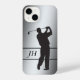 Black Silhouette Golfer on Silver Monogram iPhone Case