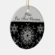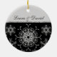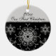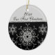 Remember your special day with this beautiful black and silver grey FAUX glitter (PRINTED) snowflakes round shaped ceramic first Christmas together keepsake ornament that can be customised with the names of the bride and groom, and the year. You can customise the text to say whatever you want. ****PLEASE be sure your text is placed where you want it, as it will print out as it appears on your monitor. Zazzle will NOT correct anything. It also matches the winter wedding invitation shown below. If you would like a different shape, or if you need any assistance, please email niteowlstudio@gmail.com.