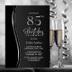 Invite your friends and loved ones with this modern black and silver 85th birthday party invitation. The customisable text area in this invitation template allows you to effortlessly include all the necessary details for your special birthday celebration, including the date, time, venue, and RSVP information. A variety of paper types and corner styles are available for your unique invitations, along with the option to download if you prefer a digital format.
