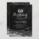 Black and silver agate 60th birthday party invitation. Elegant modern design featuring watercolor agate marble geode background, faux glitter silver and typography script font. Trendy invite card perfect for a stylish women's bday celebration. Printed Zazzle invitations or instant download digital printable template.