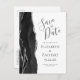 This elegant modern save the date postcard features a black watercolor agate border trimmed with faux silver glitter. The customisable text is charcoal grey on a white background. On the reverse side, edit the customisable return address and enter your wedding website URL to generate a QR code your guests can scan to learn more about your upcoming event.