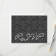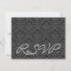 This brocade with its silver RSVP lettering is an elegant way to handle your RSVP response cards. You can also experiment with different papers to get just the look you want. I recommend the ice hued metallic paper which will make the RSVP look more silvery. Enjoy your special day!