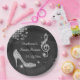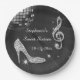 Girl's personalised, elegant custom sweet sixteen party celebration paper plates. Beautiful black and silver templates for a girl's 16th year old birthday. These plates have a funky retro disco mirror ball, glamourous printed image rhinestones / diamonds glitter, sequins, jewels sparkle high heels stilettos shoes, and glittery musical note / music note with sparkles on a classy black with white lights and sparkles background. Chic, cute, girly, modern paper plates with trendy, fashionable colours. These cool, groovy, stylish, sophisticated, pretty party plates are decorated / printed on one side only. Perfect plates for dinner dance dancing event parties. PLEASE NOTE: All products on Zazzle have flat printed images. If you need any assistance customising your product please contact me through my store and I will be happy to help.