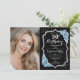 Elegant floral 50th birthday invitation with your photo. Glam black dusty light blue design with faux glitter silver. Features blue roses, script font and confetti. Perfect for a stylish adult bday celebration party. Personalise with your own details. Can be customised for any age! Printed Zazzle invitations or instant download digital printable template.