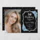 Black Silver Dusty Blue Photo 50th Birthday Invitation