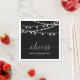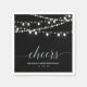 Add stylish detail to your special day with this personalised party napkin. This design features modern chic string lights and typography " Cheers" in silver and black colour theme. Matching birthday party invitations and party supplies are available in my shop BaraBomDesign.