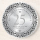 Black Silver Floral Lace 25th Wedding Anniversary Coaster