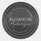 Elevate your mail with this stunning return address label. It features a sleek, charcoal-black background, creating a sophisticated canvas for your details. The striking border is a ring of sparkling, silver faux gems, reminiscent of a string of diamonds. Your name is gracefully presented in a flowing script font, while the address is in a clean, crisp serif for perfect legibility. This round label is the ideal final detail for correspondence that deserves to stand out.