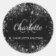 A classic black background. Decorated with faux silver glitter dust. Personalise and add your first name, monogram initials and full name.