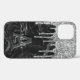 Elegant girly iphone 12 case featuring a black & silver marble background, silver sparkle glitter drips, your initial, and name.