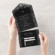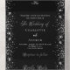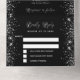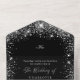 A trendy black background, decorated with faux silver glitter, sparkles. Personalise and add your names, monogram and wedding details. White coloured letters.