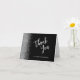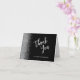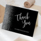 This elegant modern wedding thank you card features a border of silver faux glitter on a black background. The customisable text combines the words "Thank You" in silver grey handwriting script and the names of the bride and groom in sans serif font.