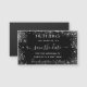 A trendy wedding Save the Date magnet. A stylish black background. Decorated with faux silver glitter sparkles. Personalise and add a date, place and your names. Save the Date is written with a modern hand lettered style script with swashes.