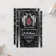 A beautiful silver and black damask background is framed by faux silver bands and more damask flowers on black. A crest with burgundy henna designs on it is bordered on each side by a regal silver Indian elephant. The elephants have their trunks raised up and are holding a crown in their trunks over the crest. White text templates for your custom wording appear below it. The back has the same design plus an additional template for further details to guests and family, which may be removed if not required. The strong bold tones give this design a luxurious, elegant and upmarket royal feel. This invitation is ideal to celebrate any Hindi or Hindu ceremony or any ethnic Asian celebration or wedding.