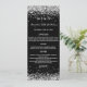 An elegant, glamourous menu card. Personalise and add your name, date and the menu. Black background, decorated with faux silver confetti.