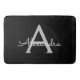 Black Silver Modern Script Girly Monogram Name Bath Mat