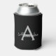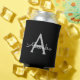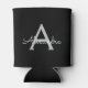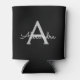 Black Silver Modern Script Girly Monogram Name Can Cooler
