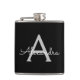 Black Silver Modern Script Girly Monogram Name Hip Flask