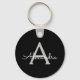 Black Silver Modern Script Girly Monogram Name Key Ring