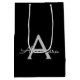 Black Silver Modern Script Girly Monogram Name Medium Gift Bag