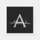 Black Silver Modern Script Girly Monogram Name Napkin
