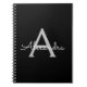 Black Silver Modern Script Girly Monogram Name Notebook