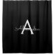 Black Silver Modern Script Girly Monogram Name Shower Curtain