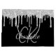 A classic black background with faux silver glitter drips, paint dripping look. Personalise and add a name and monogram initials. The name is written with a modern hand lettered style script. White and grey letters. Perfect for birthdays, bridal shower, baby shower.