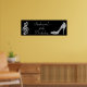Womens' and girls' personalised, elegant custom 50th birthday party celebration party banner. Beautiful black and silver girls' and woman's fiftieth / fifty years old / 50 year old birthday party banners with a glamourous printed image rhinestones / diamonds glitter, sequins, jewels sparkle high heel stiletto shoe, and glittery musical notes / music notes with sparkles on a classy black background. Chic, cute, girly, modern banners with trendy, fashionable colours. These cool, groovy, stylish, sophisticated, pretty party banners are fully customisable to meet your requirements. Perfect banners for dinner dance dancing event parties. PLEASE NOTE: All products on Zazzle have flat printed images. If you need any assistance customising your product please contact me through my store and I will be happy to help.