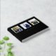 A black background, silver foil text.  Personalise and add 3 photos, your name, class of, and school name.