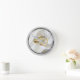Crisp black on silver Ivory or Champagne Silk texture with two golden rings wall clock as a wedding momentum