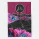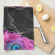 Black Silver Peafowl Marble Agate Glam Tea Towel