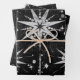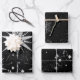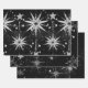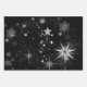 Black & Silver Pewter Starbursts & Stardust Wrapping Paper Sheet