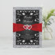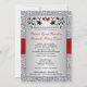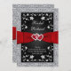 This romantic black and silver grey floral wedding invitation has a PRINTED red ribbon with a pair of diamond jewels and red FAUX glitter joined hearts on it. It also has a silver FAUX foil outer border with silver grey flowers and vines on it, with a verse on the front that says "This day I marry my best friend, the one I laugh with, dream with, live for, love". This would be a perfect wedding invitation for a winter wedding, a Valentine's Day wedding, a gothic wedding, or a New Year's Eve wedding. If you need help customising this invitation, or if you need matching items to go with it, email your request to niteowlstudio@gmail.com.