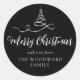 Black Silver Ribbon Tree Merry Christmas Script Classic Round Sticker