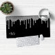 Black Silver Sparkle Glitter Drips Monogram Desk Mat