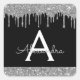 Black Silver Sparkle Glitter Monogram Square Sticker