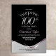 This modern black and silver surprise 100th birthday party invitation features a black and silver colour scheme, separated by a fluid wave and a stylish pink ribbon that flows from one side to the other. The customisable text area allows you to effortlessly include all the necessary details for your special birthday celebration, including the date, time, venue, and RSVP information. Whether you're planning a cosy gathering or a grand affair for your guest of honour, this contemporary invitation is sure to impress your guests.