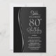 Invite your friends and loved ones with this modern black and silver surprise 80th birthday party invitation. The customisable text area in this invitation template allows you to effortlessly include all the necessary details for your special birthday celebration, including the date, time, venue, and RSVP information. A variety of paper types and corner styles are available for your unique invitations, along with the option to download if you prefer a digital format.