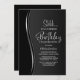 Invite your friends and loved ones with this modern black and silver surprise birthday party invitation. The customisable text area in this invitation template allows you to effortlessly include all the necessary details for your special birthday celebration, including the date, time, venue, and RSVP information. A variety of paper types and corner styles are available for your unique invitations, along with the option to download if you prefer a digital format.