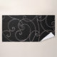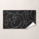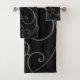 If black is your colour you will love this black with silver swirls bath towel set, it includes bath, hand, and face towel. Material: front is a polyester blend, back is 100% cotton.