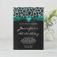 Black Silver Teal Green Leopard Foil 18th Birthday Invitation