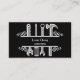 A black background, with a faux silver tools. Personalise and add your business name and a text on front. Golden letters