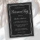 Simple and elegant, this classic retirement party invitation has a triple border frame surrounding your text. The words "Retirement Party" are written in an elegant script type face that spill over onto the lined border. Shown here in black with silver text in a contemporary type face, personalize the easy-to-use text template with your event details.